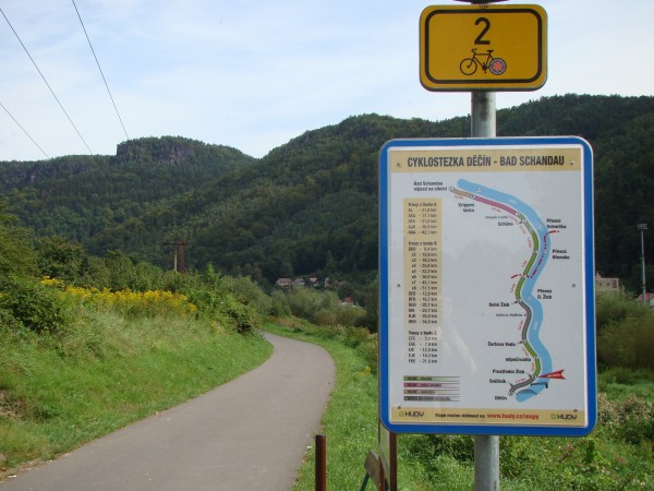 Сегодня решил пересечь границу на велосипеде. Думаю, это будет начало серии вело походов. Еду на север Чехии. Первой страной выбрал Германию. К тому же еще в прошлую поездку на электричках в Саксонскую Швейцарию я приметил эту великолепную вело дорожку вдоль Лабы от Дечина и до Бад Шандау. Уже тогда захотелось опробовать ее, вокруг великолепные виды на горы.