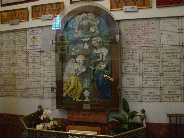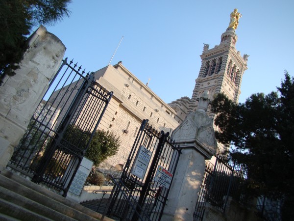 И верхняя. немножко о соборе - базилике Нотр Дам де ля Гард. Собор построен в период 1853-1864 годах, представляет собой романо-византийскую базилику с золоченой статуей Пречистой Девы высотой 10 метров и бронзовым колоколом весом более 8 тонн. Внутренее убранство собора изобилует мозаикой по византийскому образцу. Собор возведен на месте часовни, построенной в 1214 году.