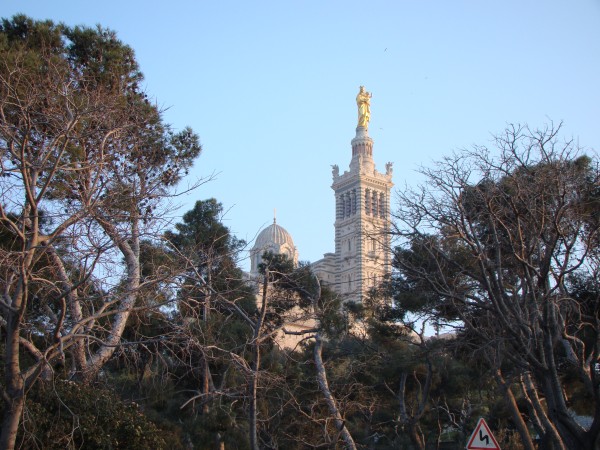 Впереди на горе собор Нотр Дам де ля Гард, построенный в конце 19 века, а справа две башни аббадства Saint Victor, построенные аж в 12 веке. Мы туда доберемся чуть позже.
