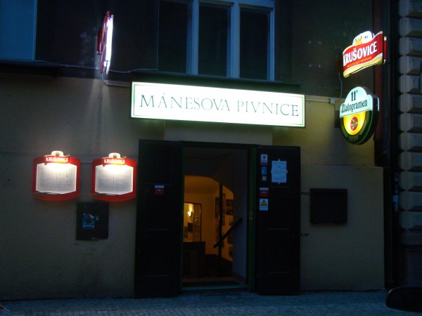 Недалеко от «Палацкехо намнести» (площадь Палацкого) открыл новую недорогую пивную - Manesova Pivnice. Зашел совершенно случайно.