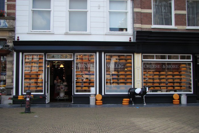 Большой магазин голландских сыров на площади. Я кстати купил кусочек. Old Amsterdam называется. Вкуснейший! Особенно если потереть с макаронами, очень сильный аромат! А по твердости напоминает хозяйственное мыло, сыр не режется, а ломается.