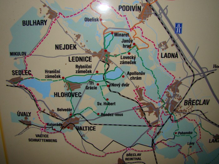 Из Праги до Брна ехали на автобусе Студент Агенси со встроенными телевизорами в спинки кресел. Я смотрел сериал «Друзья», Вика слушала радио. В Брне пересели на электричку и поехали в сторону австрийской границы. В течение часа лицезрели бескрайние поля кукурузы и горы вдалеке. В небольшом городке Бржецлав (буквально за 6 км до границы) нас встретил Рома и отвез в село, или можно сказать деревню Хлоховес (Hlohovec). Сразу замечу, что место просто идеально подходит для изучения окрестностей Ледницко-Валтицкого ореала – бывших владений семьи Лихтенштейн, где расположены красивые замки.